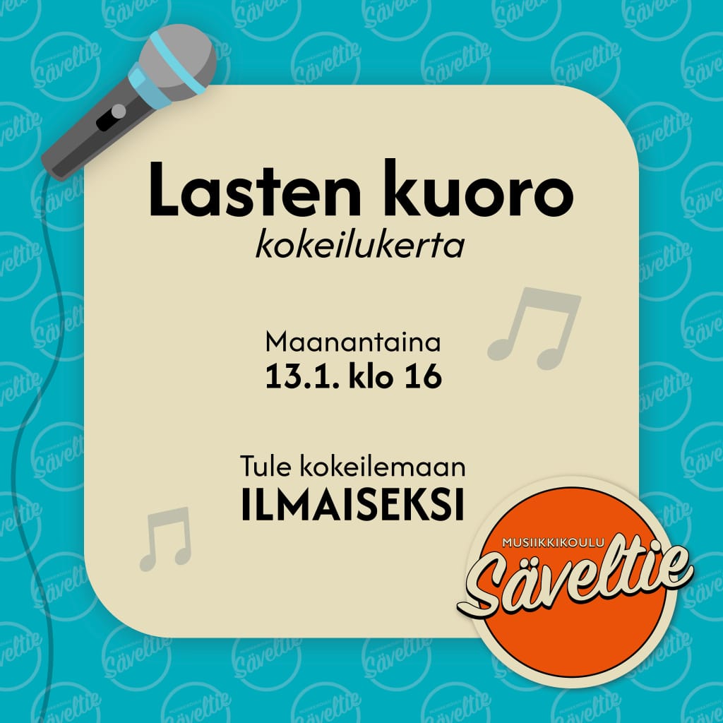 In the choir, you'll get to sing and learn together with friends, making it a great place to find new companions. We have fun through various exercises, and at Säveltie, we prioritize a pleasant and safe group atmosphere where everyone can enjoy themselves and learn in a secure environment. This group is designed for children aged 6 and up.